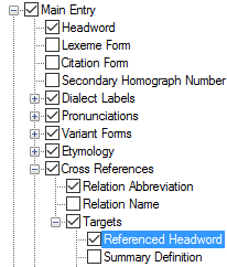 In the left pane, Headword appears under Main Entry, Minor Entry (Complex Form), Minor Entry (Variants) and Subentries.
